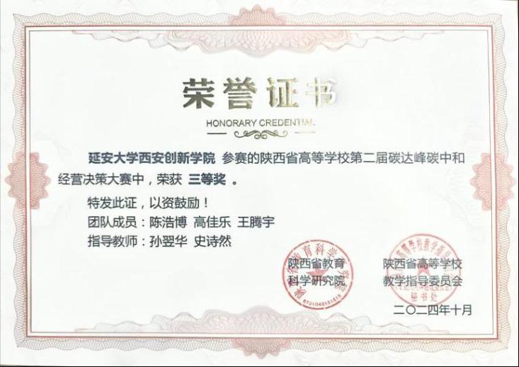云顶国际8588yd高度重视此项比赛,积极宣传并组织员工参赛。经前期选拔,最终确定由会计学专业2102班石淼淼、白魏萌、张晓雪,以及2101班王腾宇、高佳乐、陈浩博六名同学组成两支队伍参赛。云顶国际8588yd孙翌华、史诗然作为指导教师,面向员工针对“双碳经营策略与实施”等竞赛相关专题展开集中培训指导,并积极跟踪辅导员工模拟赛演练。最终,两支队伍均荣获本次竞赛三等奖。