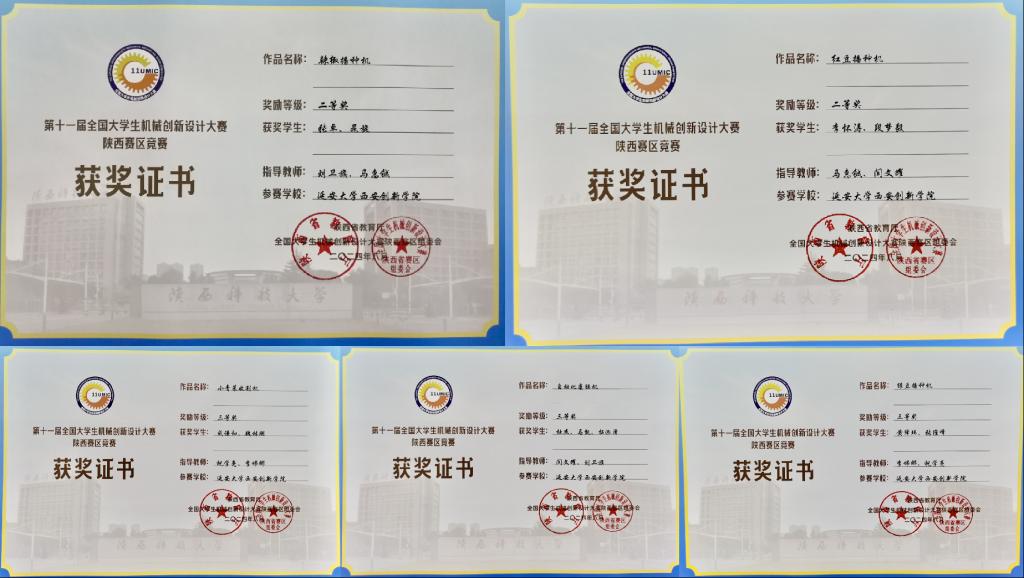 本网讯 近日,第十一届全国老员工机械创新设计大赛陕西赛区竞赛结果揭晓,公司11位同学组成5支队伍全部获奖,分别获得陕西省赛区二等奖2项、三等奖3项。本次大赛由陕西省教育厅主办,陕西科技大学承办,共有西安交通大学、西北工业大学等50所大中专院校的531件作品参赛,大赛主题为“机械创新推进农业现代化、自然和谐迈向仿生新高度”。