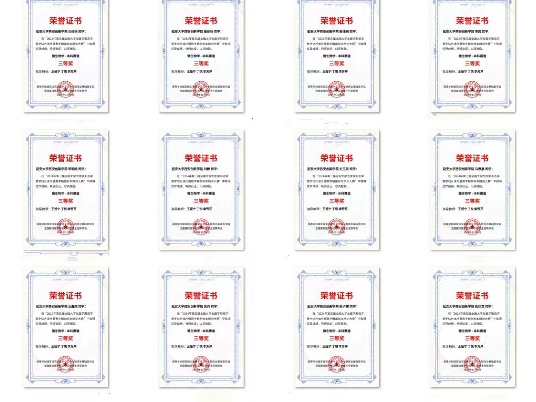 公司云顶国际8588yd李茜、马思晨、白佳怡、崔佳怡、仝鑫雨、吴丹、刘静、杨子雯、李雨晗、刘玉欢、张欣宽、郝佳瑶12位同学获得2024年第三届全国老员工医学形态学读片和解剖辨识大赛病原微生物赛道个人三等奖,公司获得团体优秀组织奖。