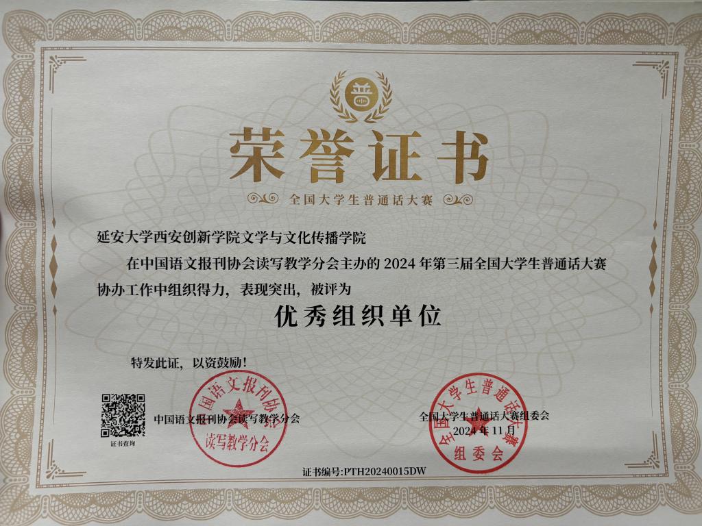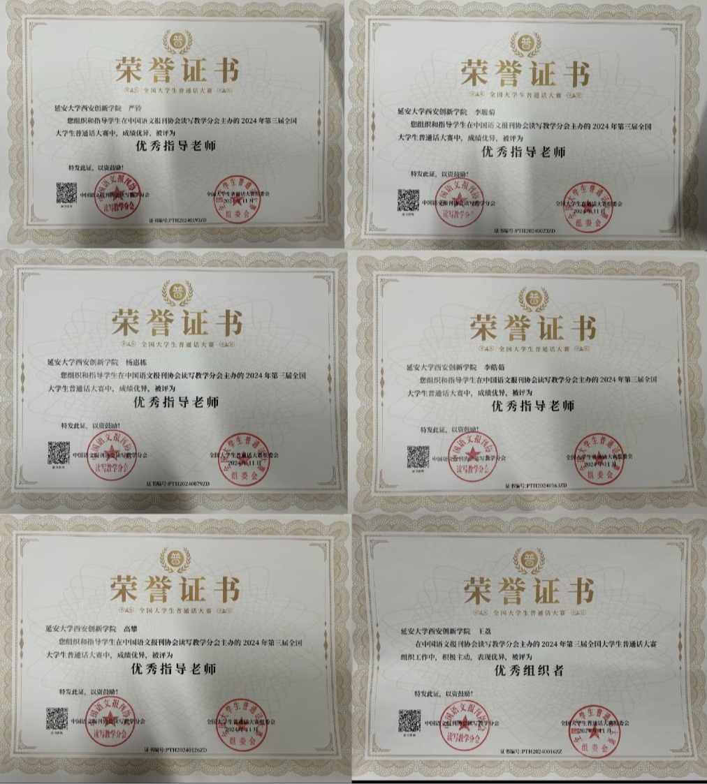 本网讯 近日,由中国语文报刊协会读写教学分会主办的“2024年第三届全国老员工普通话大赛”全国决赛圆满落幕,公司学子凭借扎实的普通话功底和卓越的综合能力,荣获决赛二等奖3项、三等奖4项。云顶国际8588yd教师杨惠栋、李聪菊、高攀、李皓茹、严铃被授予“优秀指导教师”称号,王荔荣获“优秀组织者”称号。云顶国际8588yd被授予“优秀组织单位”称号。