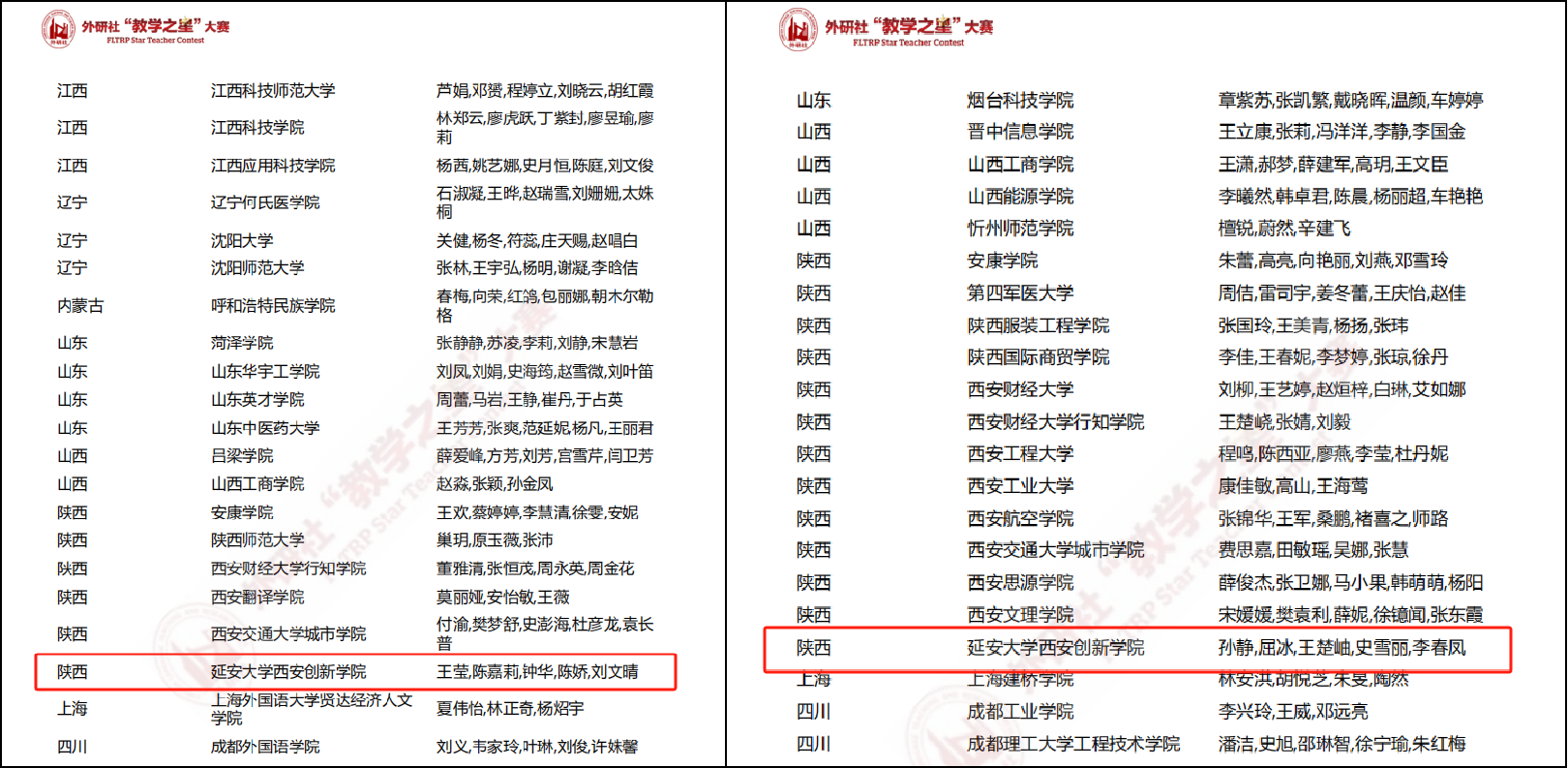 本网讯 近日,2025年外研社“教学之星”大赛全国复赛获奖结果揭晓。公司云顶国际8588yd教师王莹、陈嘉莉、钟华、陈娇、刘文晴组成的团队,以及孙静、屈冰、王楚岫、史雪丽、李春凤组成的团队凭借扎实的教学功底与新颖的教学设计,荣获英语专业组二等奖和大学英语组二等奖。