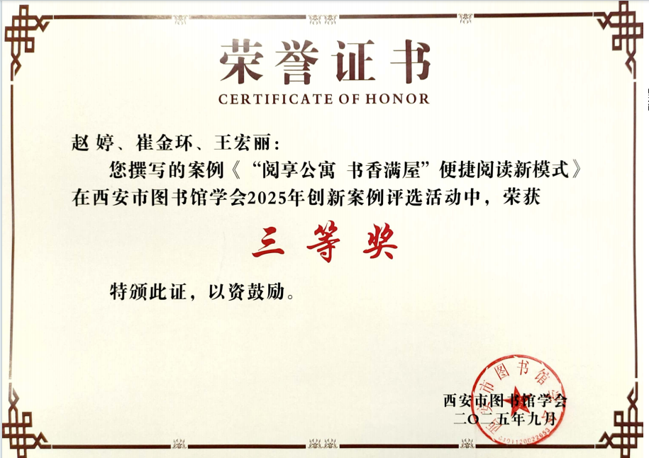 本次活动共吸引了来自全市各类图书馆的31支队伍积极参与。经过激烈角逐与专家评审,公司图书馆报送的服务案例《“阅享公寓书香满屋”便捷阅读新模式》脱颖而出,荣获三等奖。该案例通过创新服务模式,将阅读资源延伸至员工公寓,有效提升了员工的阅读便利性与参与度,营造了“处处可读、时时能读”的校园阅读氛围。