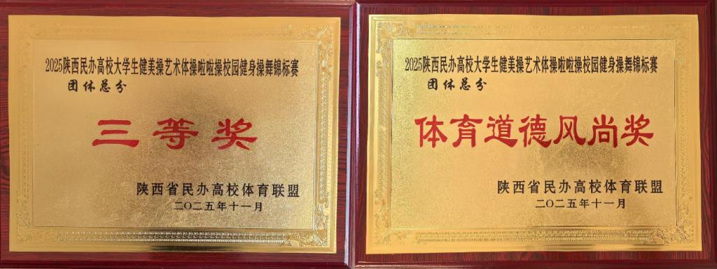 本网讯 11月19日,由陕西省民办高校体育协会主办、陕西国际商贸公司承办的“2025年陕西省民办高校艺术体操啦啦操校园健身操舞锦标赛”在陕西国际商贸公司步长体育馆圆满落幕。公司街舞社团代表队在比赛中表现出色,荣获“校园健身操舞(自选套路)”与“校园健身操舞(规定套路)”双项第一,并在“爵士啦啦操(自选套路)”中夺得第二名,同时荣获“团体总分三等奖”和“体育道德风尚奖”。
