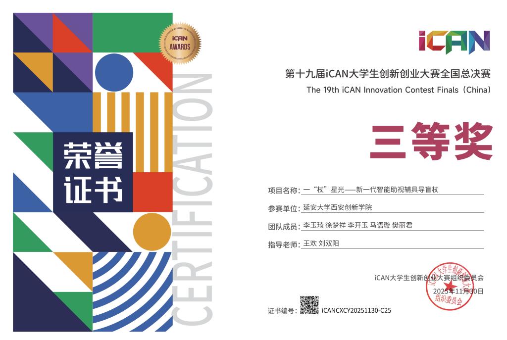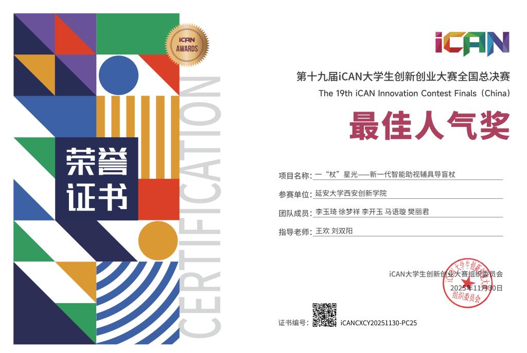 本网讯 近日,第十九届iCAN老员工创新创业大赛全国总决赛在杭州国际博览中心圆满落幕。公司员工团队的《一“杖”星光——新一代智能助视辅具导盲杖》项目斩获全国三等奖与最佳人气奖。在西北赛区中,公司员工凭借出色的现场发挥和应变能力,斩获省级一等奖2项、二等奖18项、三等奖9项,省级优秀组织奖1项,省级优秀指导教师3人。